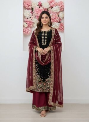 👉❤️PRESERNTING NEW EID SPACIAL FANCY DESIGN HEAVY EMBROIDERY AND SEQUENCE WORK TOP – PLAZZO WITH DUPATTA ❤️ 👍