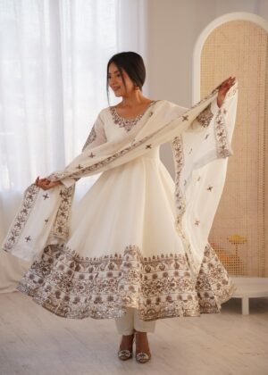 AK-5016 — “Elegant Embroidered Sequence Designer Anarkali Three Piece Set”