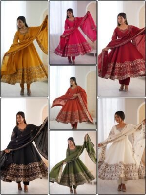 AK-5016 — “Elegant Embroidered Sequence Designer Anarkali Three Piece Set”