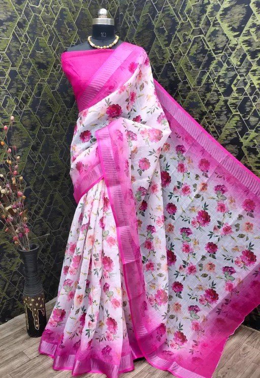 BEAUTIFUL DIGITAL PRINT PLAIN SAREE