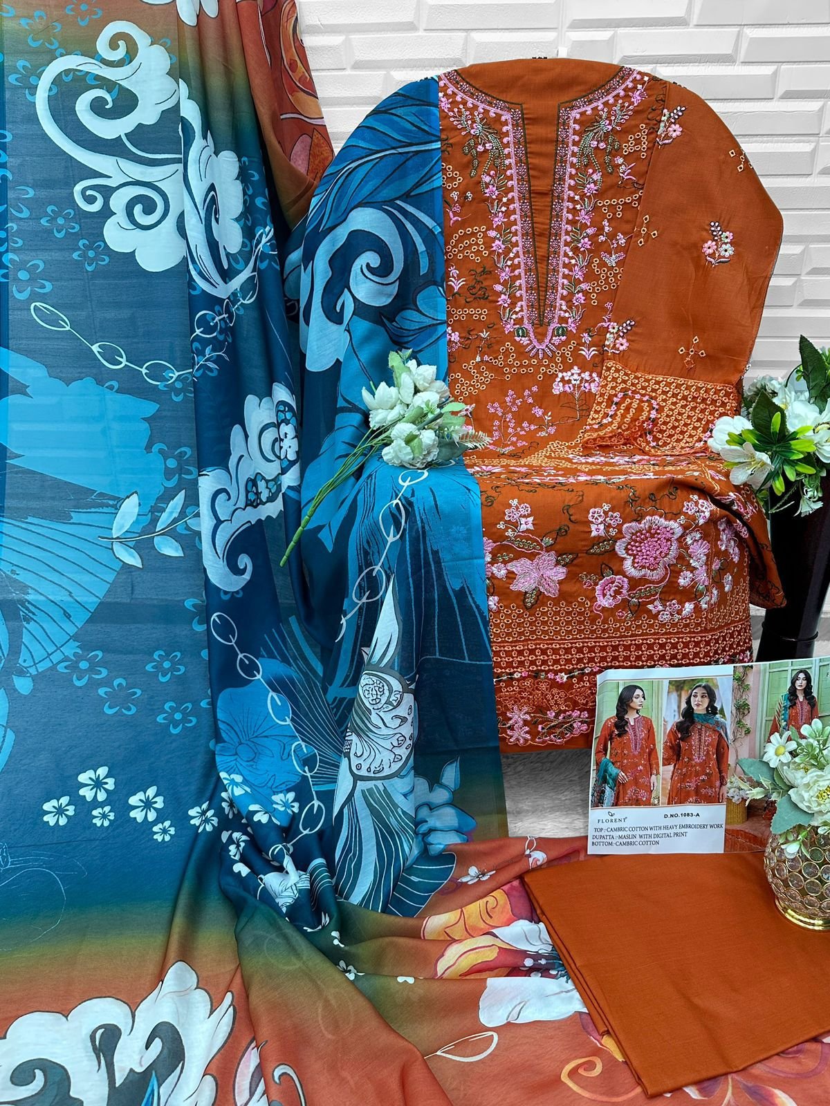 Top :-CAMBRIC COTTON WITH HEAVY EMBROIDERY WORK