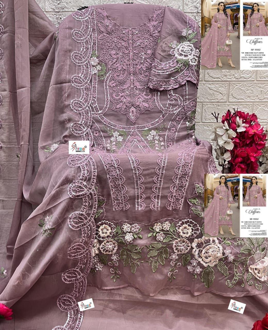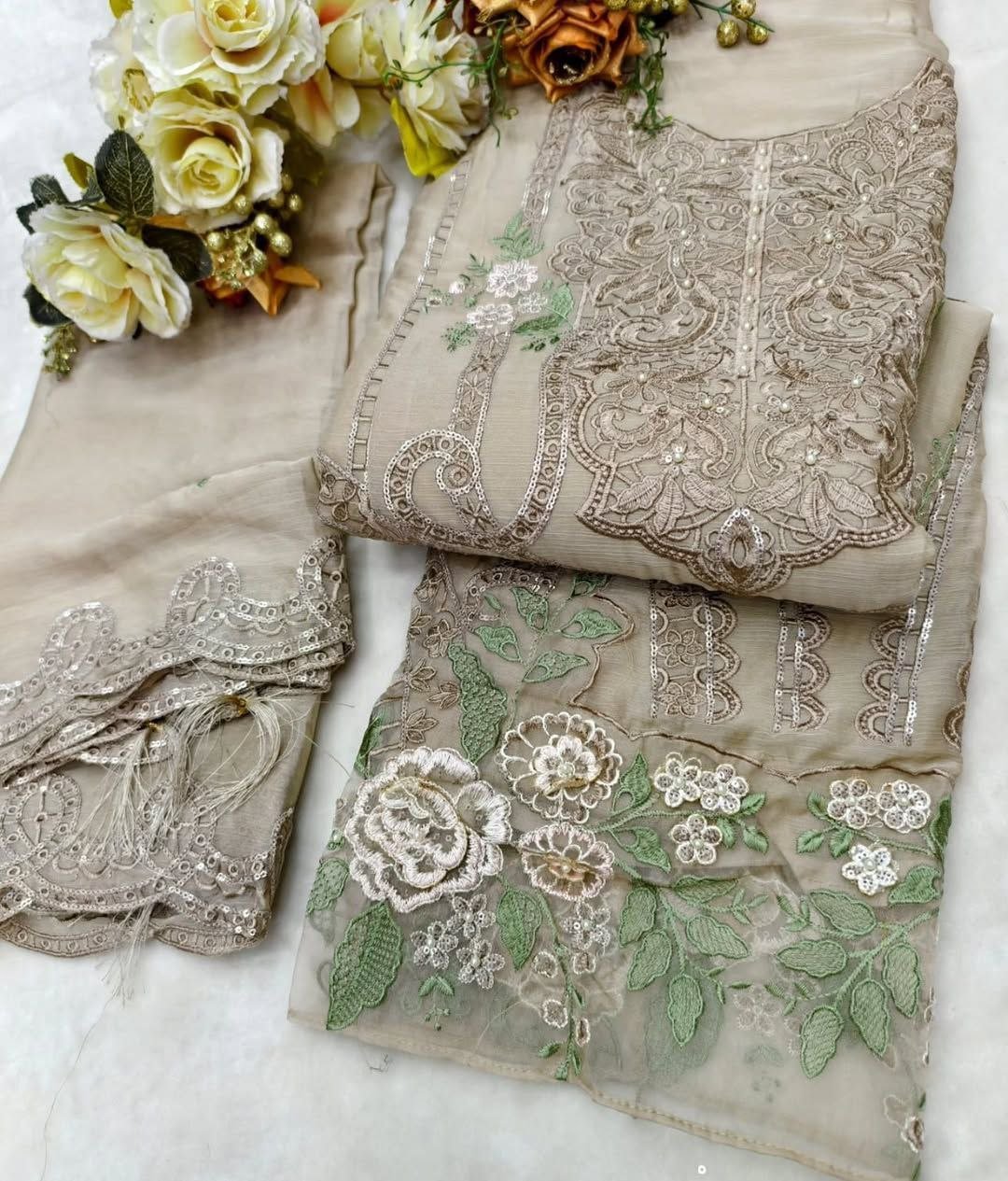 Top : Dinting chiffon Heavy with heavy embroidery with Hand Khatl