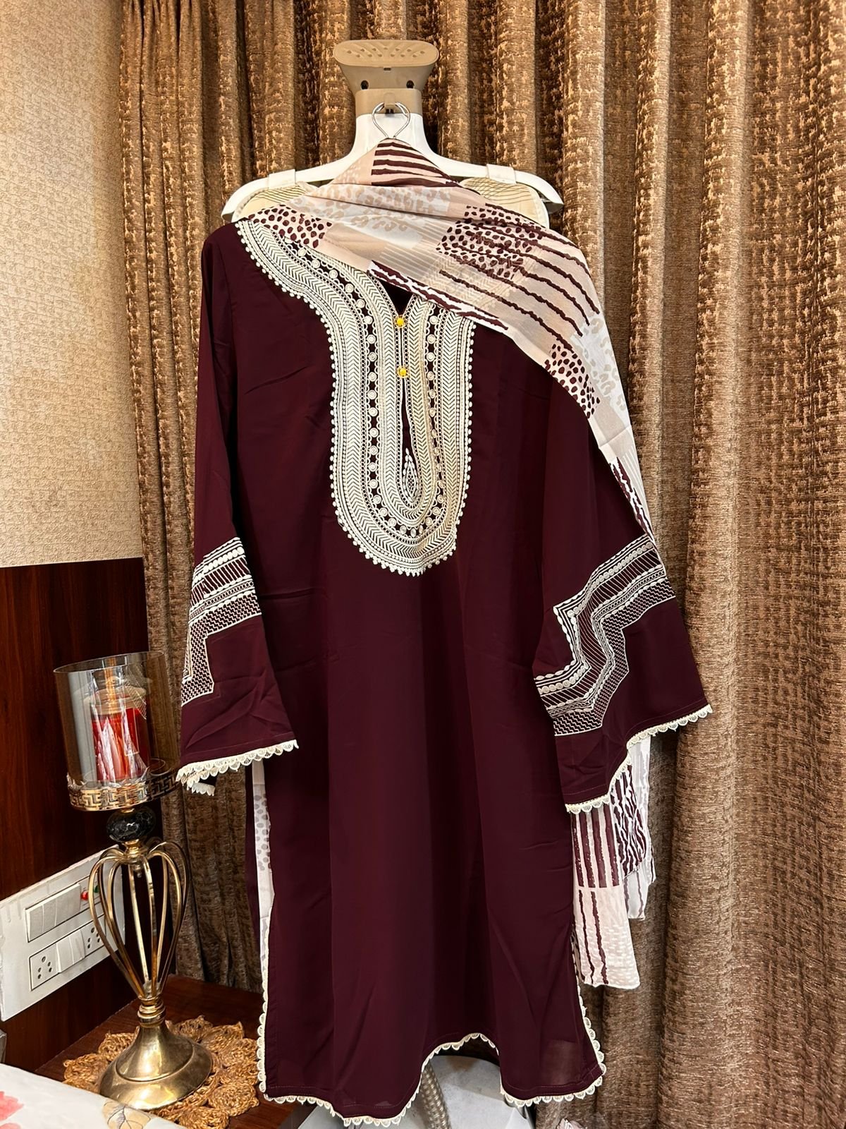 Designer stylish Tunic Classic embroidered Kurti Paird with Heavy Embrdry sleevs …& *Pant Georgette digital Dupatta