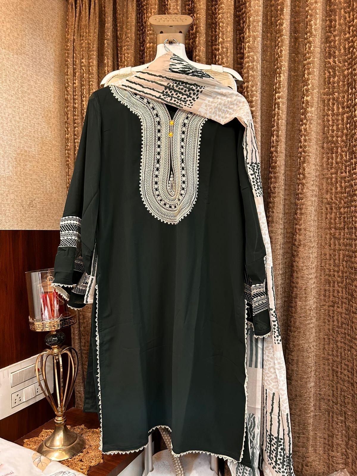 Be the first to review “Designer stylish Tunic Classic embroidered Kurti Paird with Heavy Embrdry sleevs …& *Pant Georgette digital Dupatta” Cancel reply