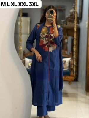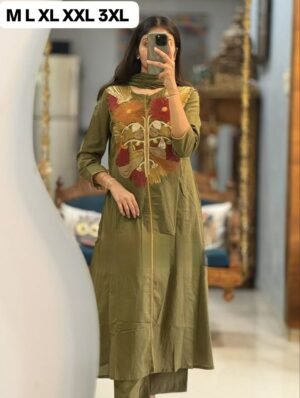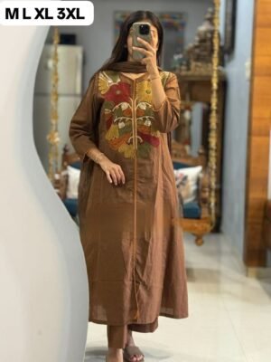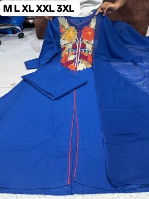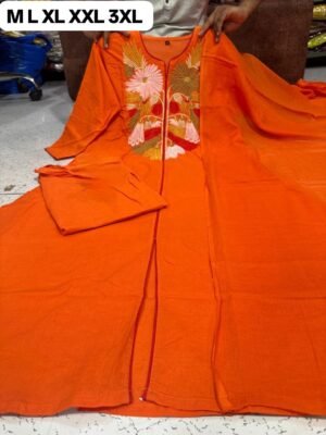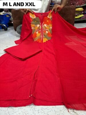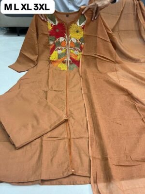 Elegant 3 Pcs Cord Set: This stylish kurti pant dupatta set features a vibrant kurti detailing on the yoke and a flattering pleated design. Paired with matching Pent and a complementing dupatta, it’s perfect for festive and casual wear alike.