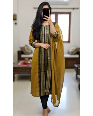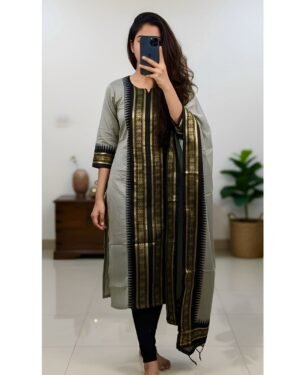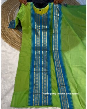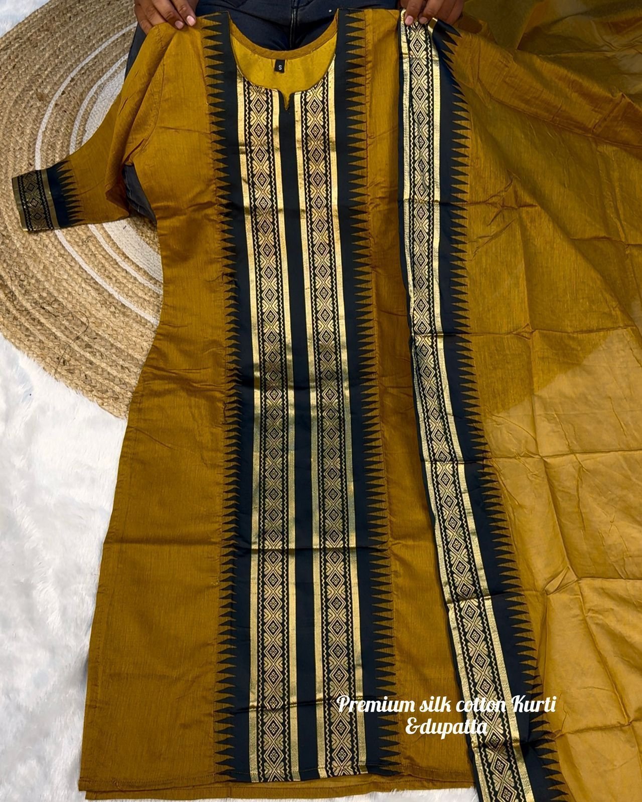 Elevate your style with this stunning pure silk cotton Kurti set with beautiful zari kanchi border work and beautiful contrast zari weaving dupatta and This is perfect upcomingPongal and festival wear