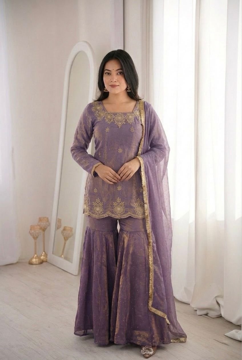 * Design: Embroidery Sequence Work With Zarkan Diamond Work