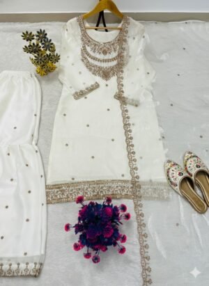 Be the first to review “FESTIVAL SEASON LUNCH NEW DESIGNER HEAVY EMBROIDERY WORK ON FENDY FABRIC TOP SHARARA AND DUPATTA SET” Cancel reply