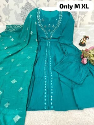 Elevate your ethnic wardrobe with this stunning Colorfull Anarkali Suite, perfectly crafted for a rich and elegant look. Featuring intricate hand-beaded embroidery on the neck and a beautiful full-flare silhouette.
