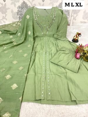 Elevate your ethnic wardrobe with this stunning Colorfull Anarkali Suite, perfectly crafted for a rich and elegant look. Featuring intricate hand-beaded embroidery on the neck and a beautiful full-flare silhouette.