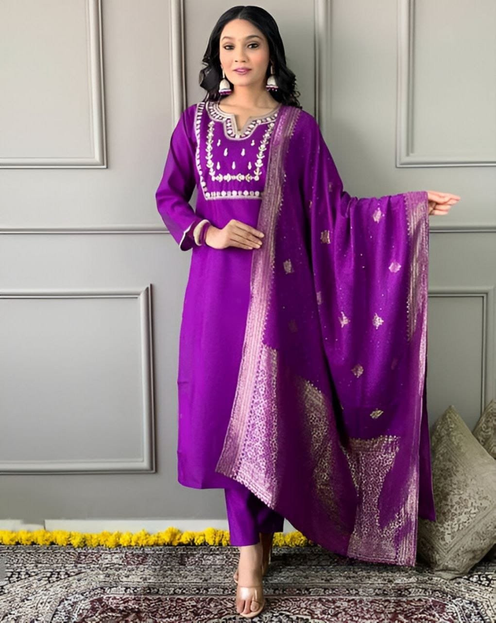 Top Fabric :- Heavy Party Wear Heavy Viscose Pv Chanderi Cotton With Embroidery Sequence Work With Full Sleeve