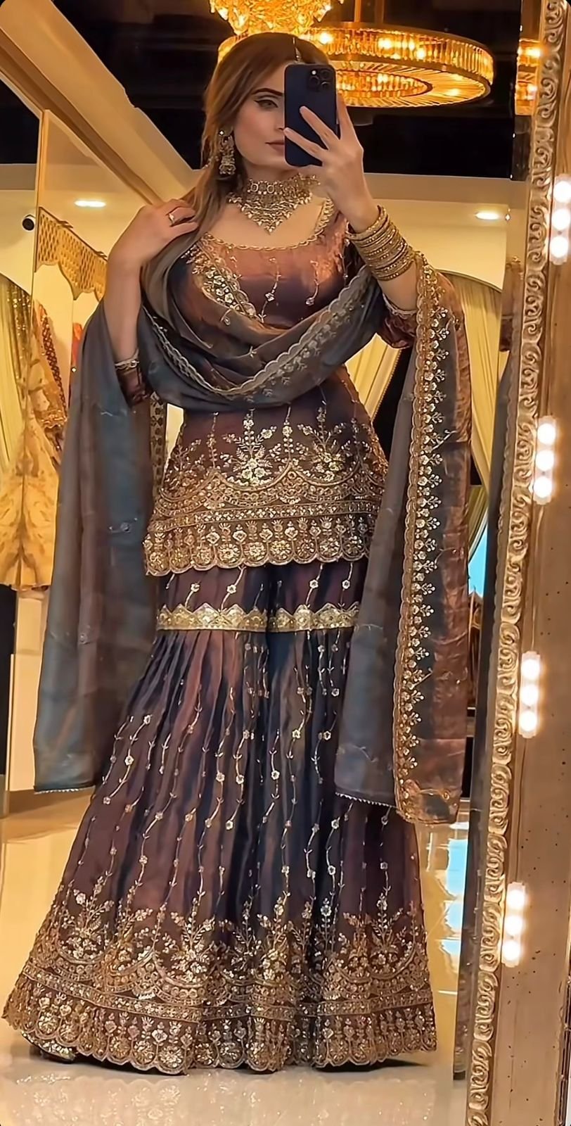 Sharara Palazzo : Heavy Fandy Crushi Silk With 5mm Sequence Embroidery Work.