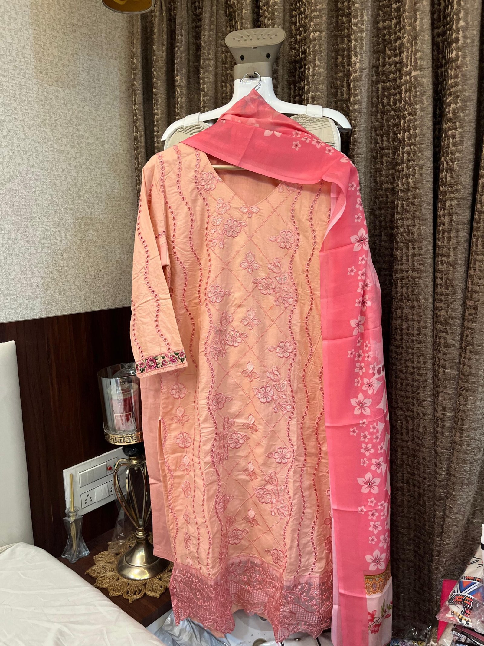 CHIKANKARI COTTON STITCHED (INNER STITCHED) WITH STITCHED COTTON BOTTOM WITH TABBY SILK DUPATTA