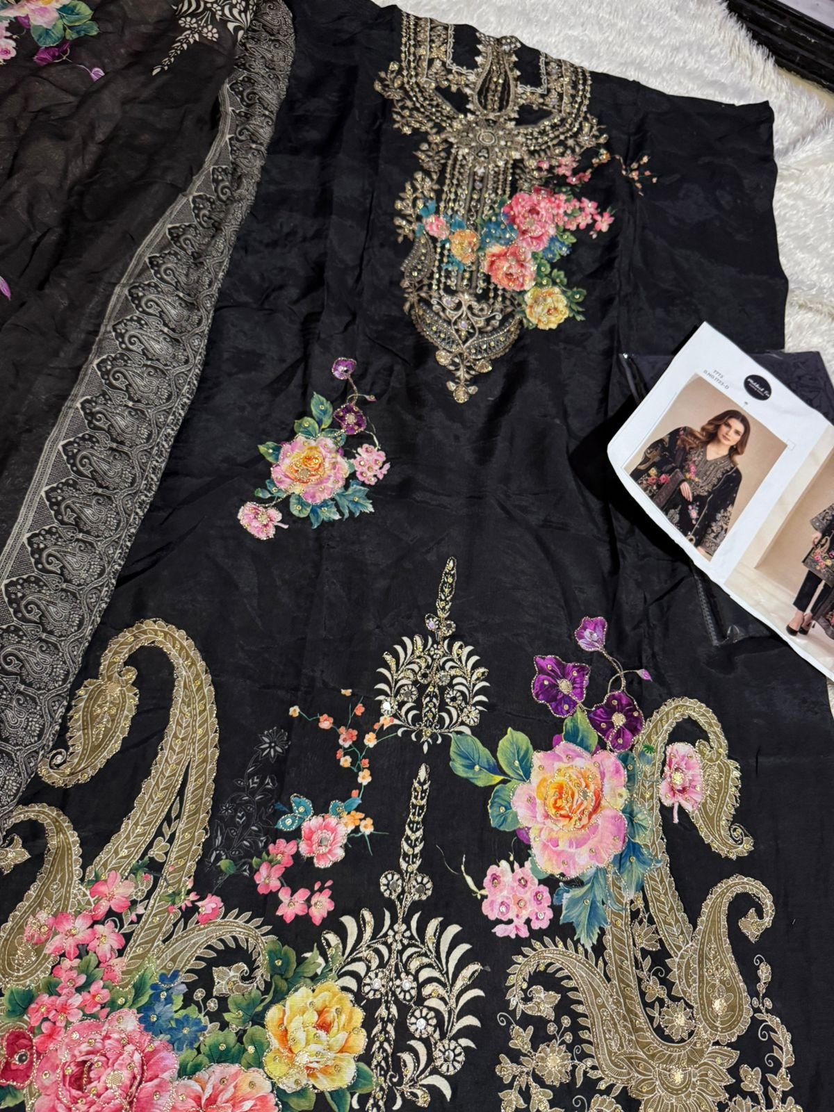Top pure viscose maslin digital print with aari handwork