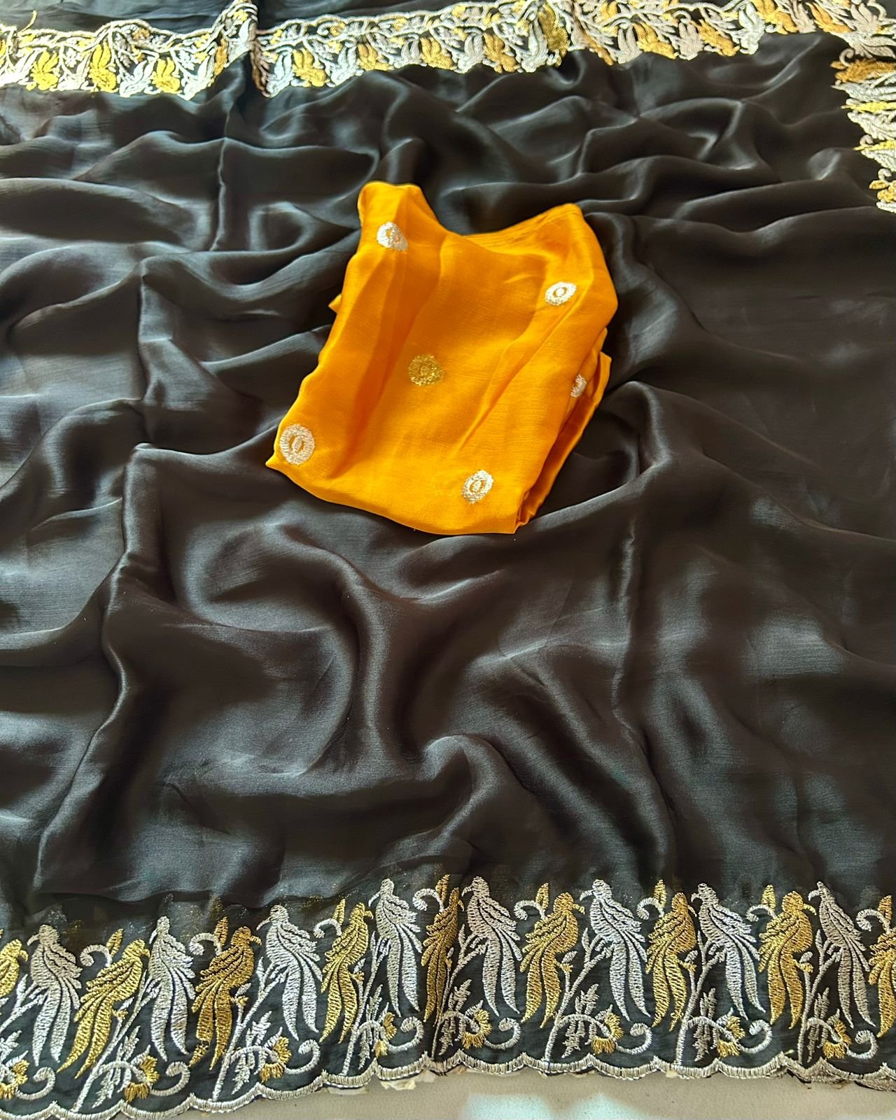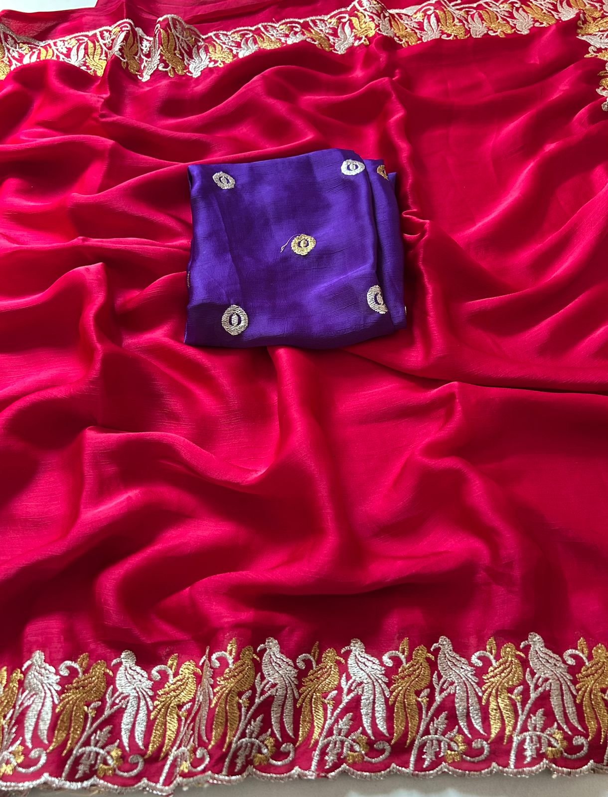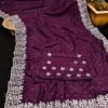 Fabric – satin chiffon crush silk with beautiful embroidery work scalloped cut work border