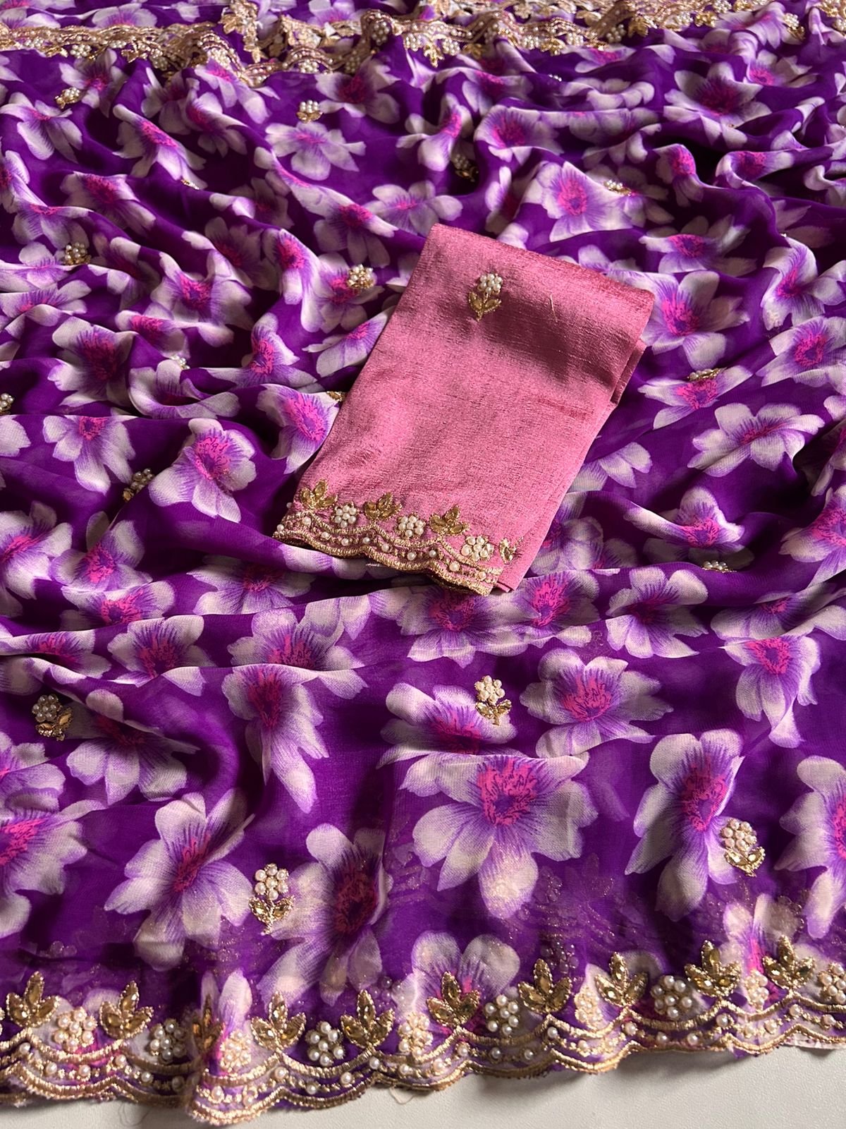 Fabric – georgette saree with beautiful print with beautiful embroidery and work sequence butty scalloped lessĀ border