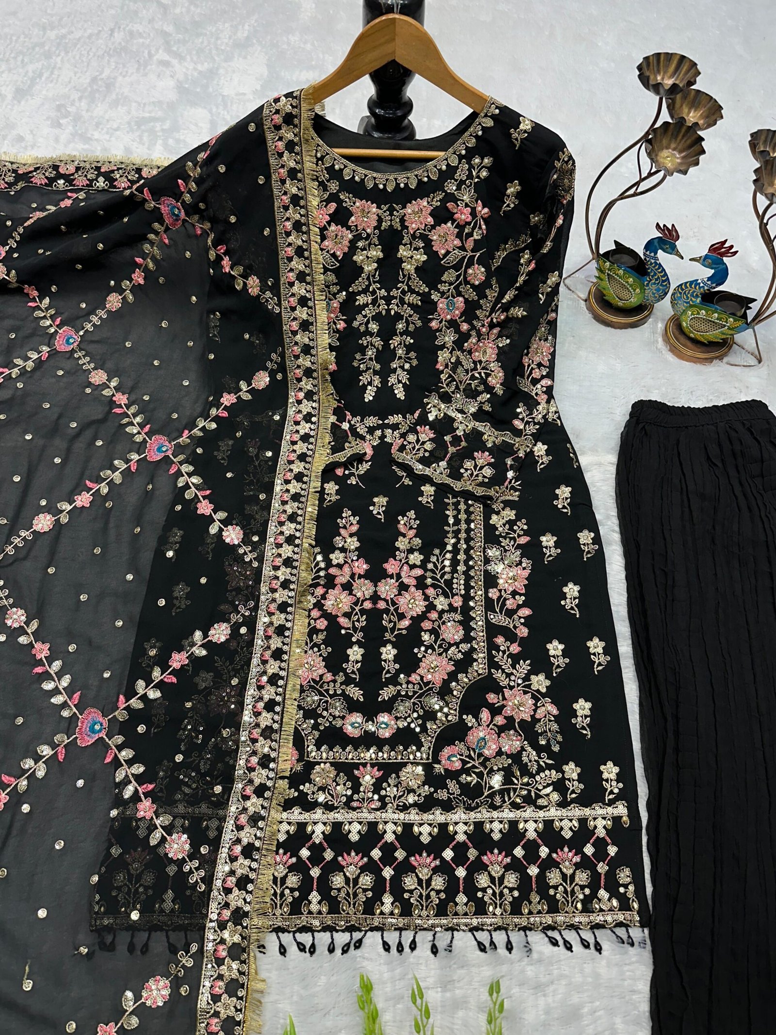 Be the first to review “NEW ĐĚSIGNER PARTY WEAR TOP AND PANT. WITH FANCY DUPPATA AND EMBROIDERY WORK” Cancel reply