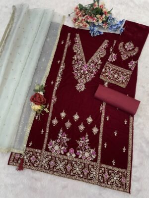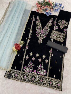 Be the first to review “Plush velvet paired with intricate embroidery and elegant piping details creates a look that’s festive, graceful, and undeniably premium” Cancel reply