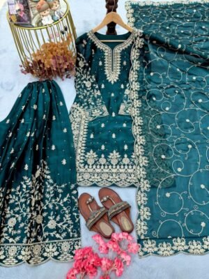 Dupatta Fabric:Pur Gmy Silk With Heavy Embroidery 3 mm Sequence & Coding Dori Work With Cutwork