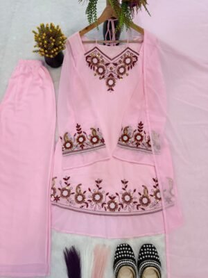 SKU: Presenting New Designer Collection In Heavy Faux Georgette Silk Top-Bottom And Dupatta Set Fully Stitched Ready To Wear
