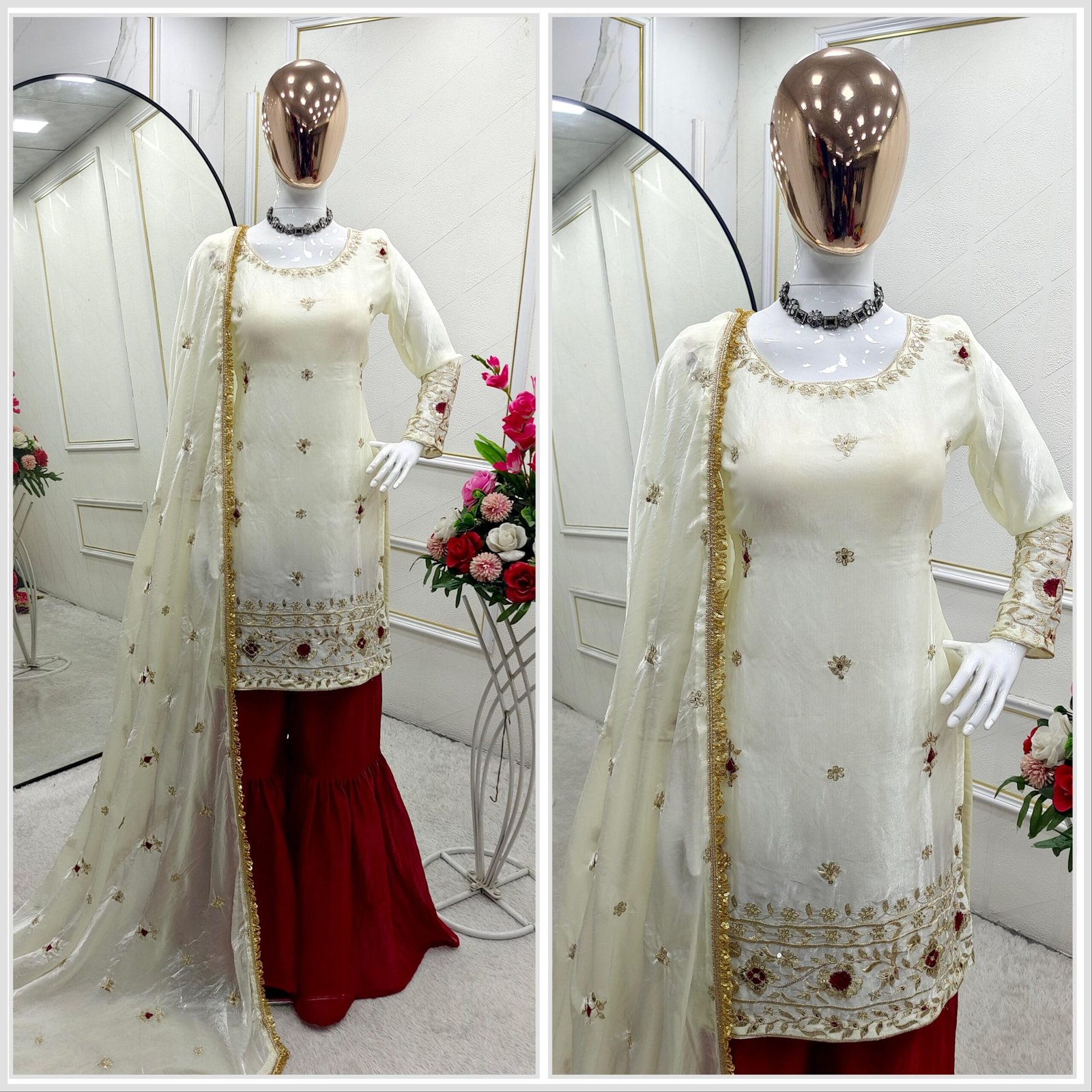 Be the first to review “Presenting New Pure Fendy Silk Top-Sarara and Dupatta Set Fully Stitched Ready To Wear π₯ππ₯°” Cancel reply