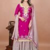 👗Launching New 🦋 Đěsigner Party Wear Look Pur Natural Crepe Top & Farshi Palazzo With Dupatta set