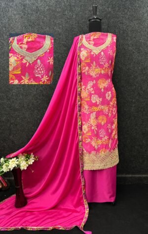 Top Fabric – Primium Multi Colour Digital Printed Chinon WithEmbroidery Fancy Coding Dori+Dhaga,Zari,Sequence Work