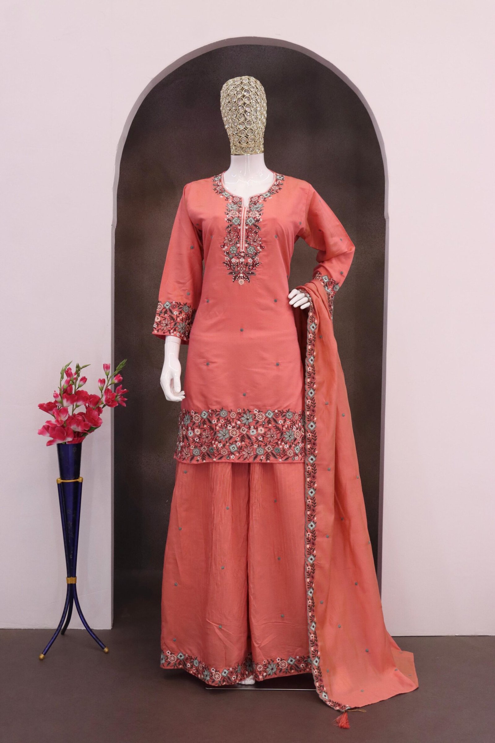 BOTTOM :- Roman Simar with Heavy Embroidery Work & Attached Heavy Crep Silk Inner