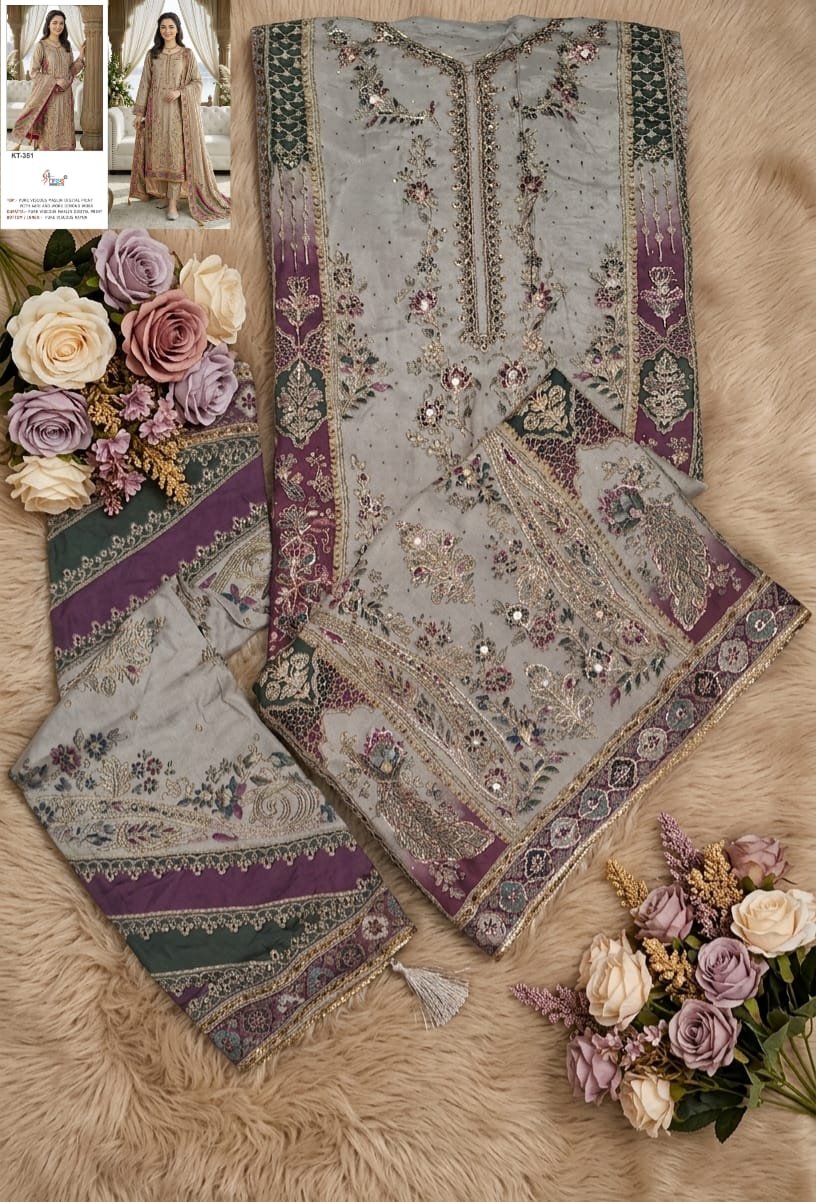 Anamsa 589 Velvet Heavy Embroidered Beautiful Design Sequence An Moti Work Pakistani Suits