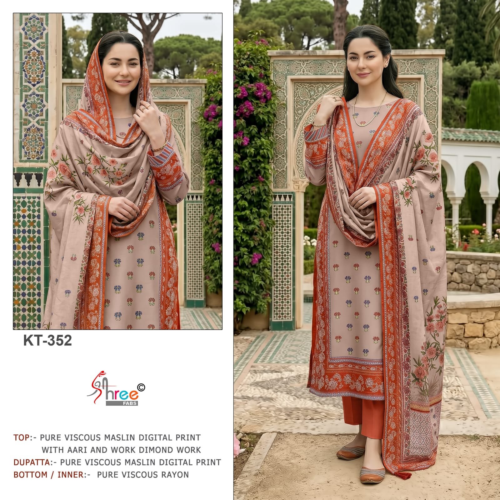 semi stitched DESIGN NO.- KT – 352 * Pure viscous Maslin digital print and hand work *