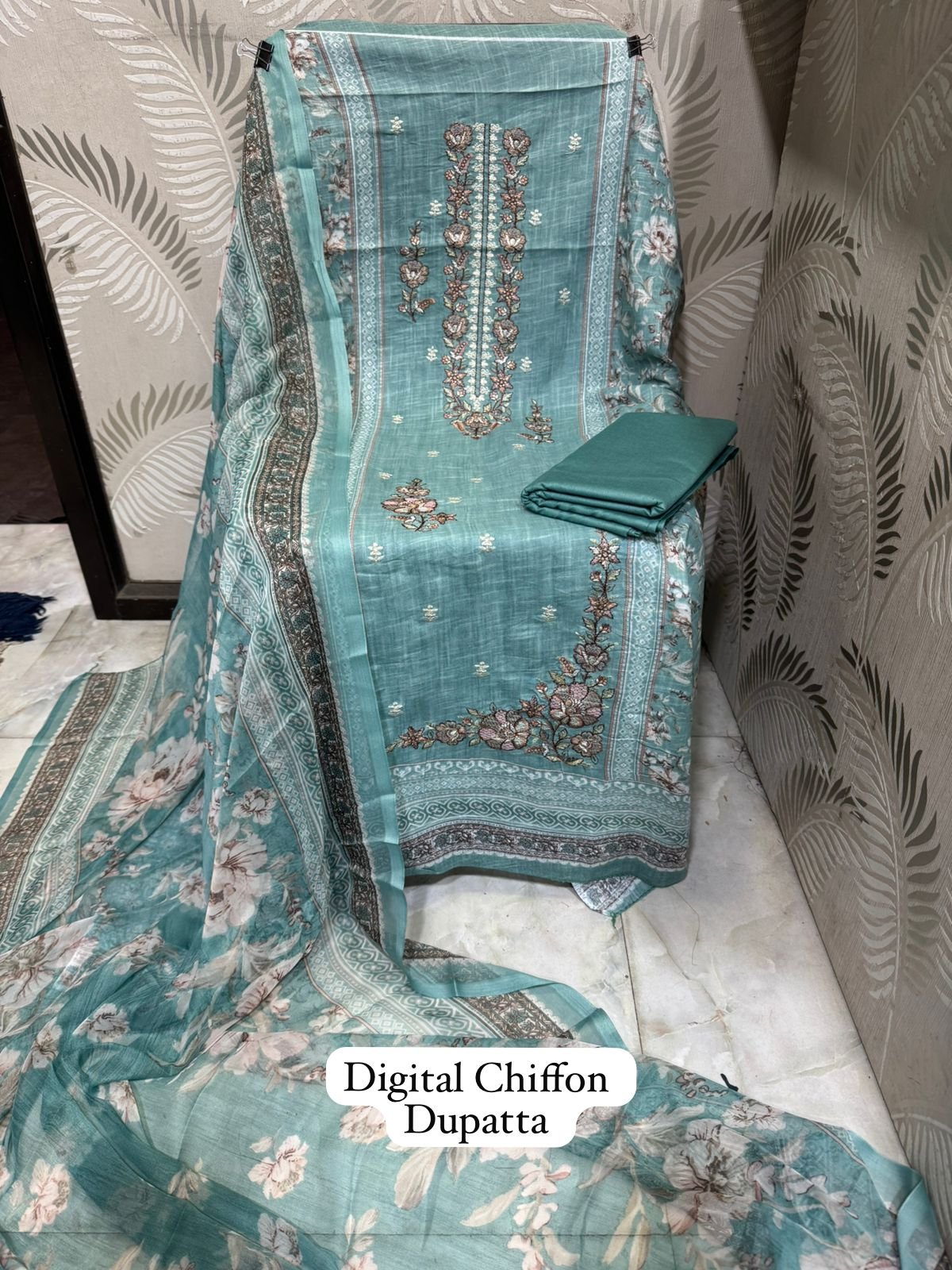 semi stitched Pure Cotton Digital Print with Exclusive Heavy Panel Embroidery work