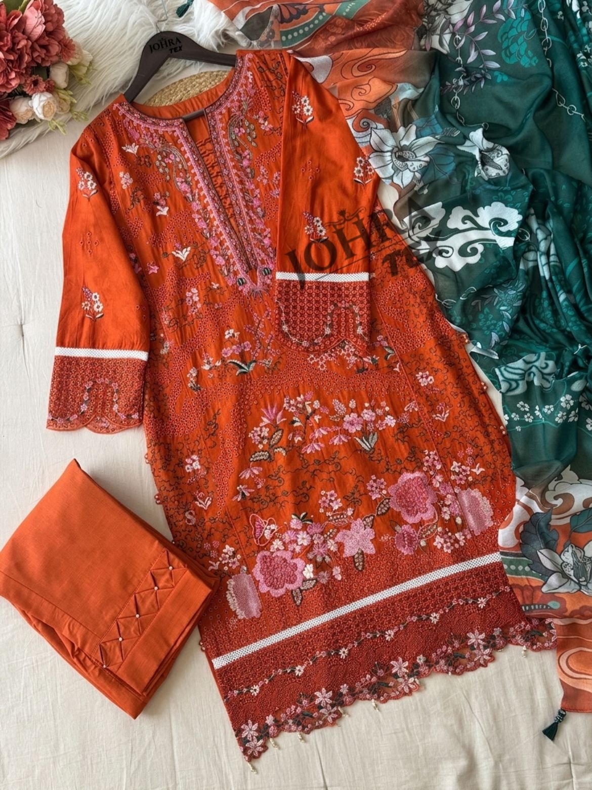 Top :-CAMBRIC COTTON WITH HEAVY EMBROIDERY WORK