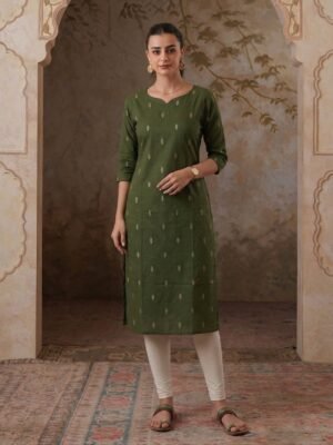 This Premium Kurti made from Silk Blend fabric with Jacquard Weaving Jari
