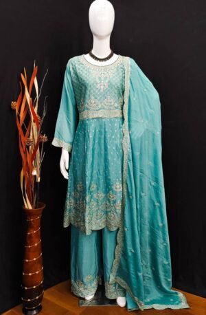 BOTTOM:- Heavy Chinon With Sequence Embroidery Work