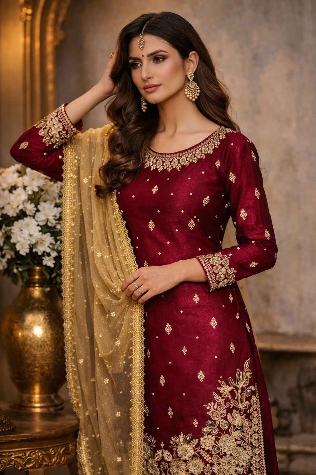NEW ĐĚSIGNER PARTY WEAR TOP AND PLAZZO. WITH FANCY DUPPATA AND EMBROIDERY WORK