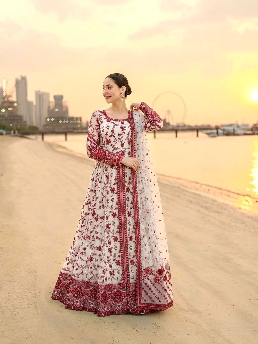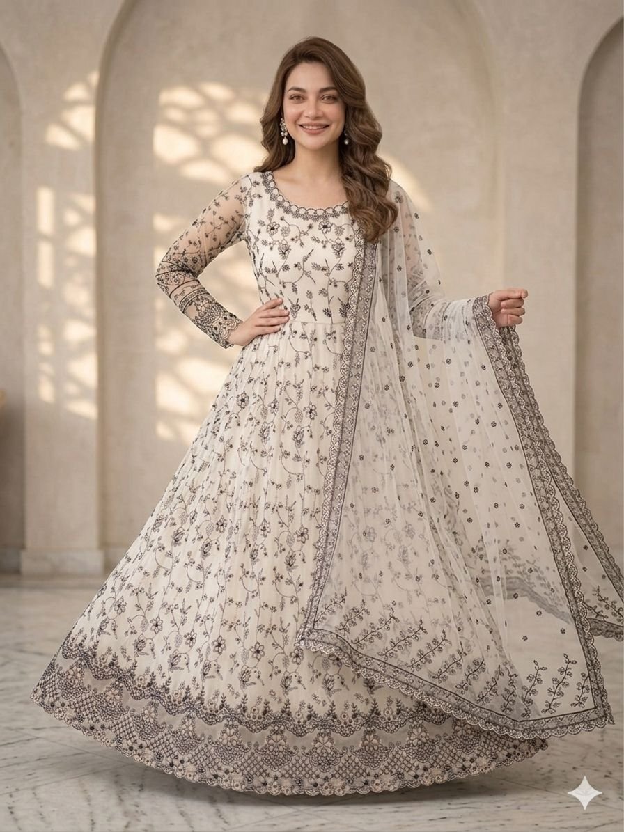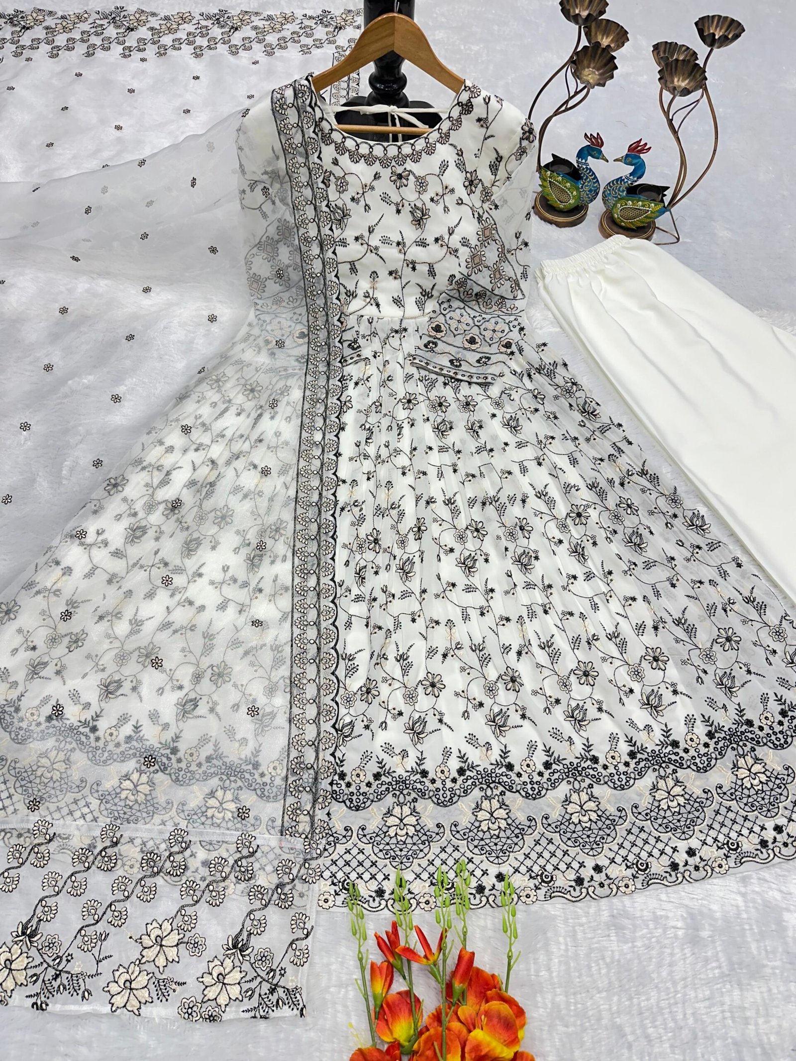 GOWN FABRIC :HAVY FOX GOARGATE HAVY EMBROIDERY WORK AND FULL SLIVE