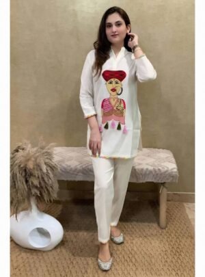 Bottom (Pant): Muslin Fabric with Digital Prints with Multicolor Fancy border