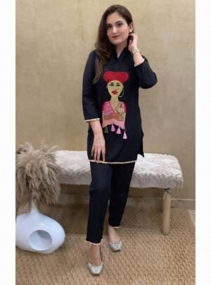Be the first to review “stitched AK-G29 Black & White Color Anarkali Suit Set seems to be a party wear outfit made from Maslin fabric with Fancy multicolor Lace Border with Embroidery Chain Works(2-Pair)” Cancel reply