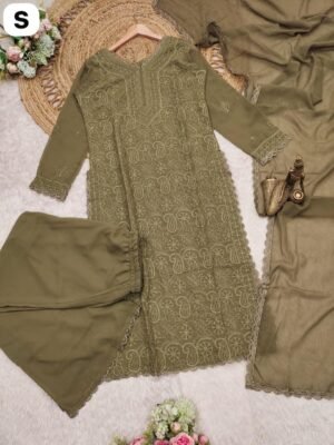 stitched AK launching chikankari embroidery 3 pic suit