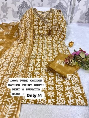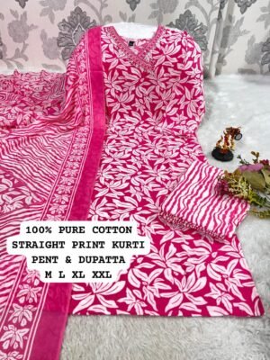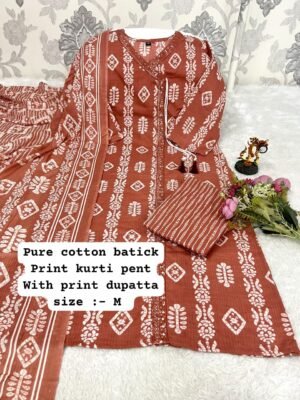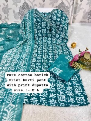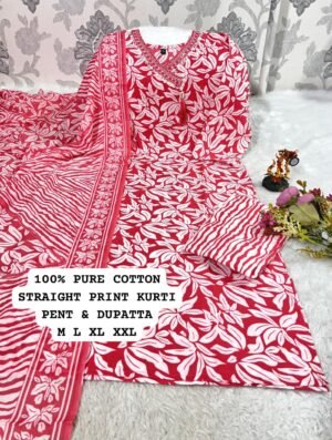 Be the first to review “stitched Best V NECK Pattern Cotton 3pcs set Cotton kurti pant printed duppata set with work patti on neck” Cancel reply