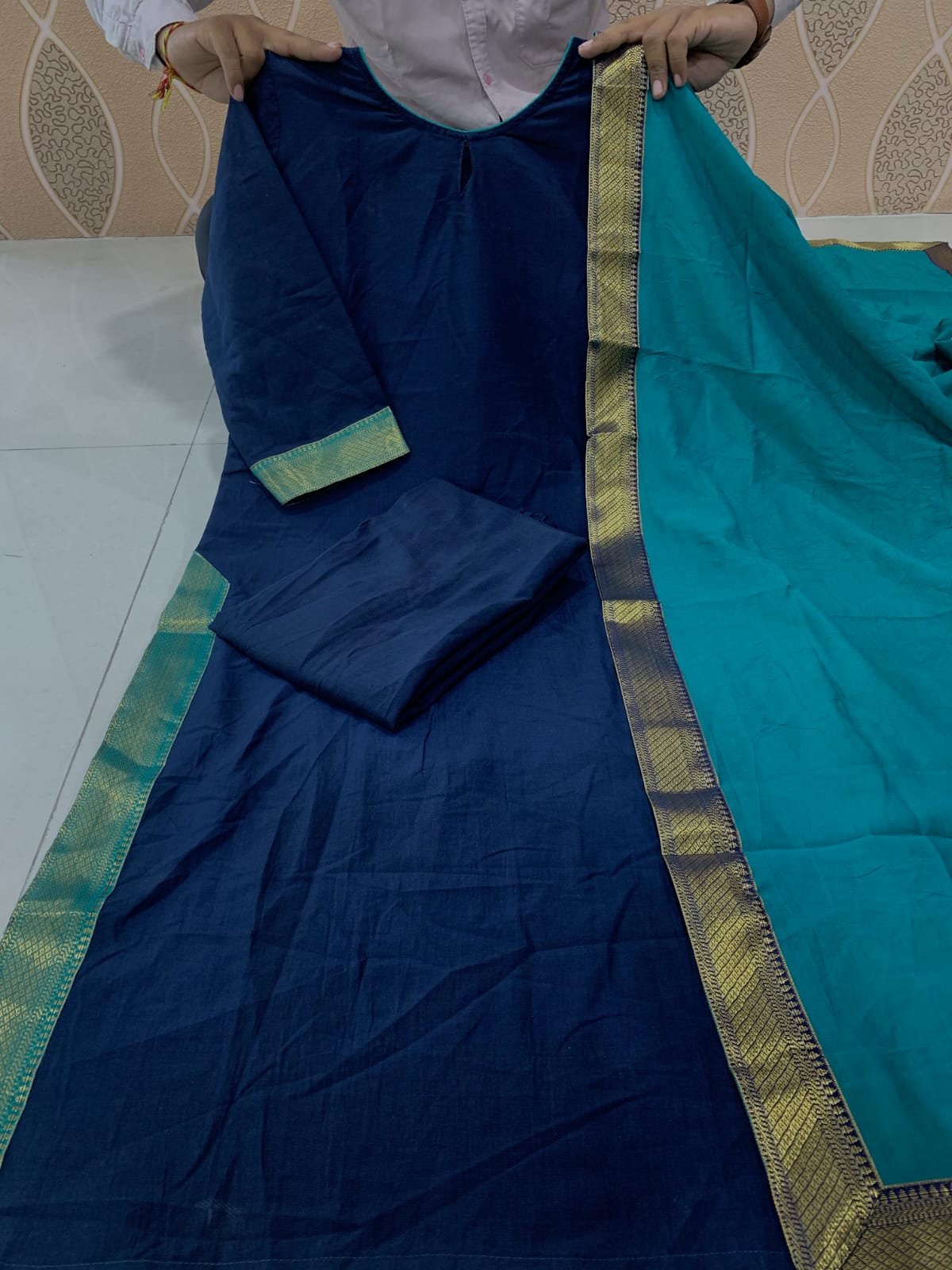 Featuring Beautiful Suit Sets in pure Banarasi side lace top with bottom viscose,it is beautiful decorated design