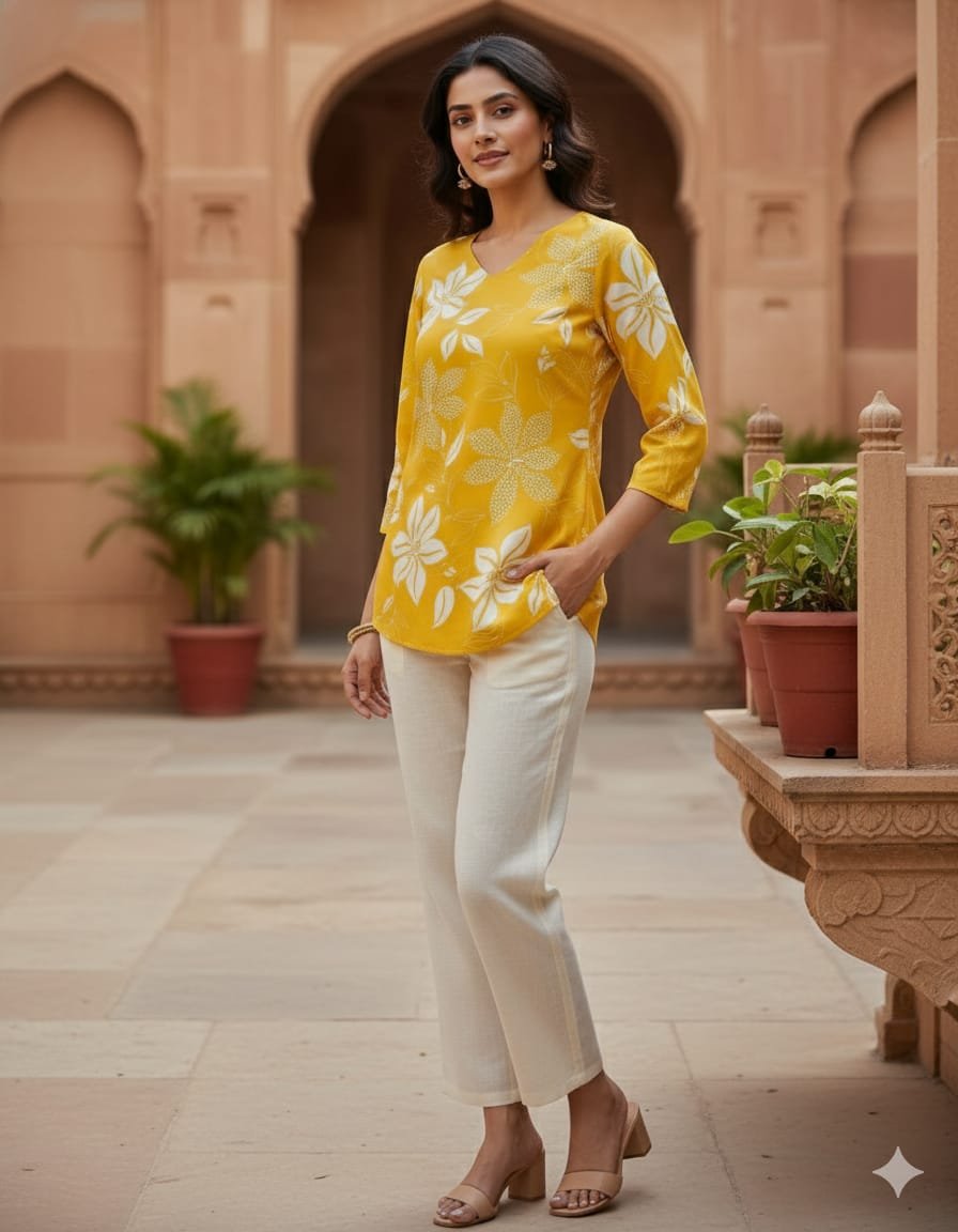 stitched Featuring Lilce New Party Wear Cotton Print Short Top Wachi is Beautiful Nack With Occasion it is Very easy Breezy And Comfortable