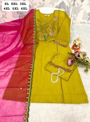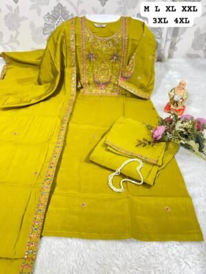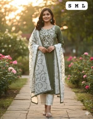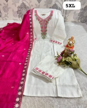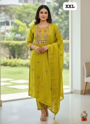 *HAND WORK KURTI WITH DUPATTA PENTS SET WITH WORK ON SLEEVS*🪡