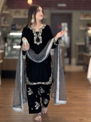 Anamsa 589 Velvet Heavy Embroidered Beautiful Design Sequence An Moti Work Pakistani Suits
