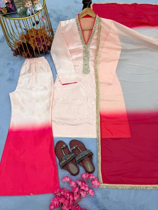 Dupatta Fabric:Pur Dual Tone Soft Tabby Organza Sillk With Fancy Lace Border