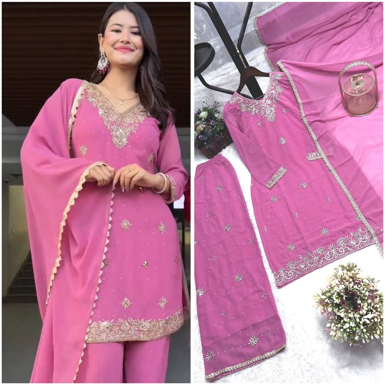 LAUNCHING NEW FASHIONABLE COLLECTION 3 PIECE FANCY KURTI WITH PLAZZO AND DUPATTA