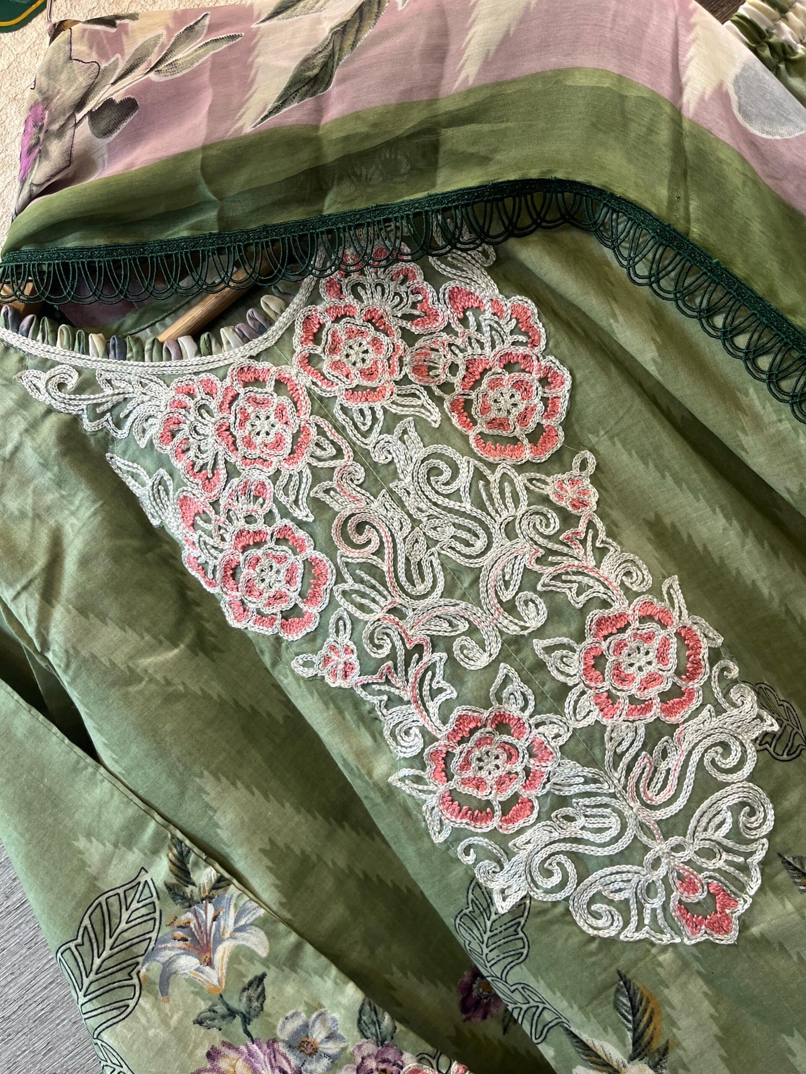 FULL STITCHED COTTON TOP WITH PATCH ON NECK WITH FANCY STYLING IN SLEEVES AND DAMAN