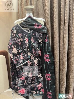 stitched MARIA.B PRESENTS  NAME:- STITCH VOL-70  READYMADE COLLECTION  PRINTED COTTON STITCHED WITH STITCHED COTTON BOTTOM AND COTTON DUPATTA