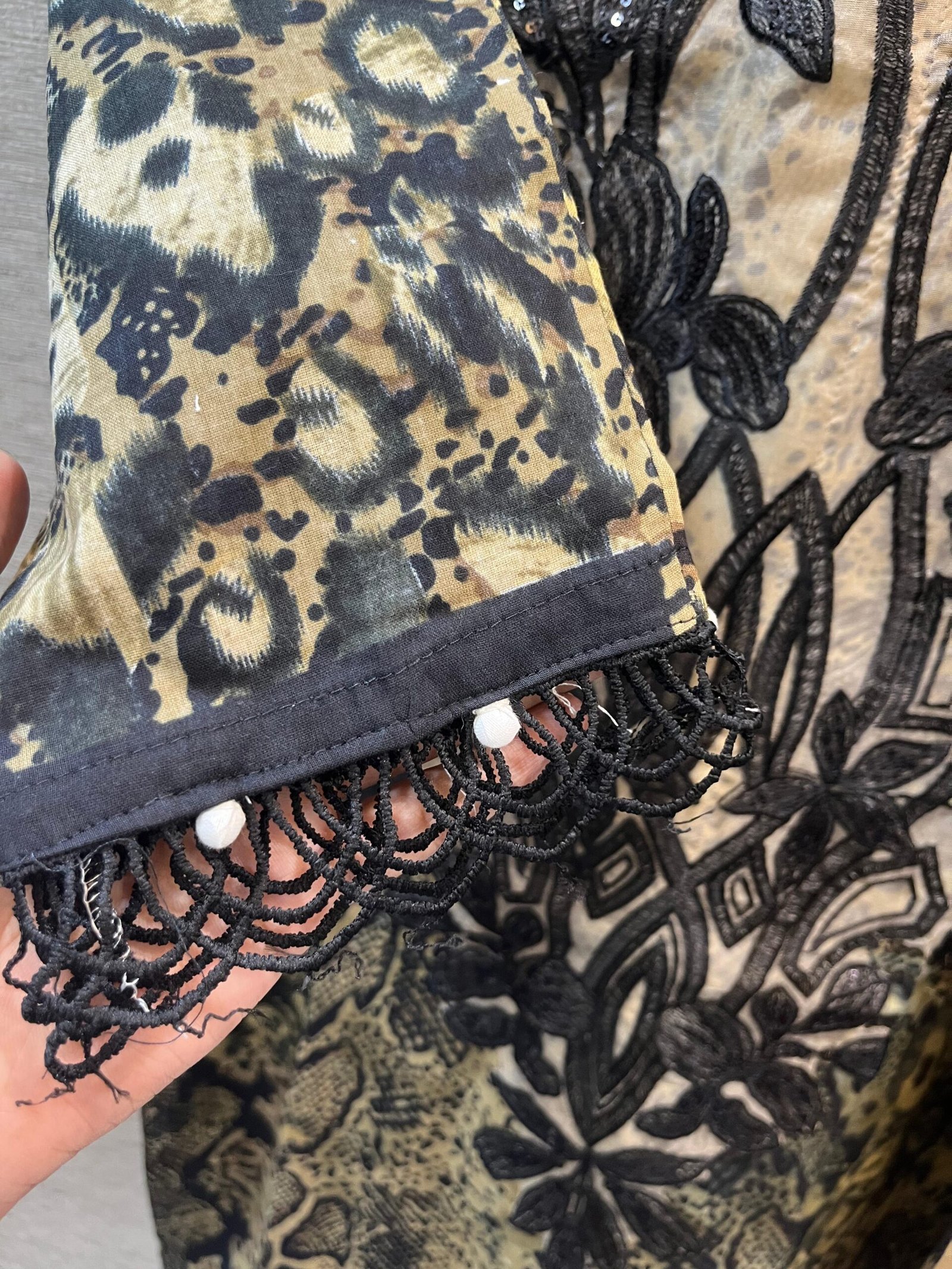 FULL STITCHED COTTON TOP WITH PATCH ON NECK WITH FANCY STYLING IN SLEEVES AND DAMAN