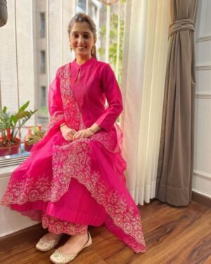 New Lunching Pure Cotton Silk Kurtipent With Orgenza Duppata Embroidery Work